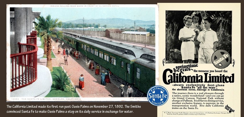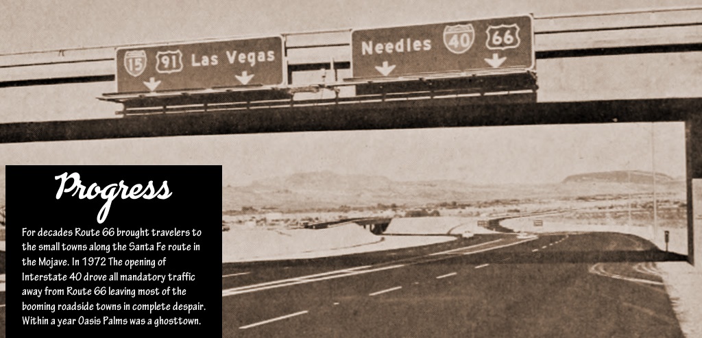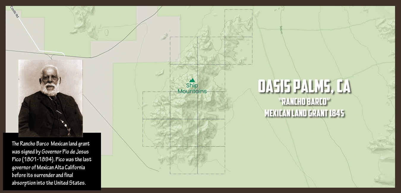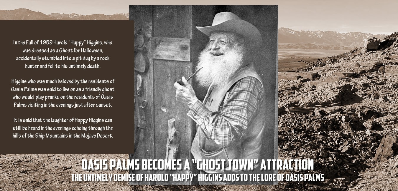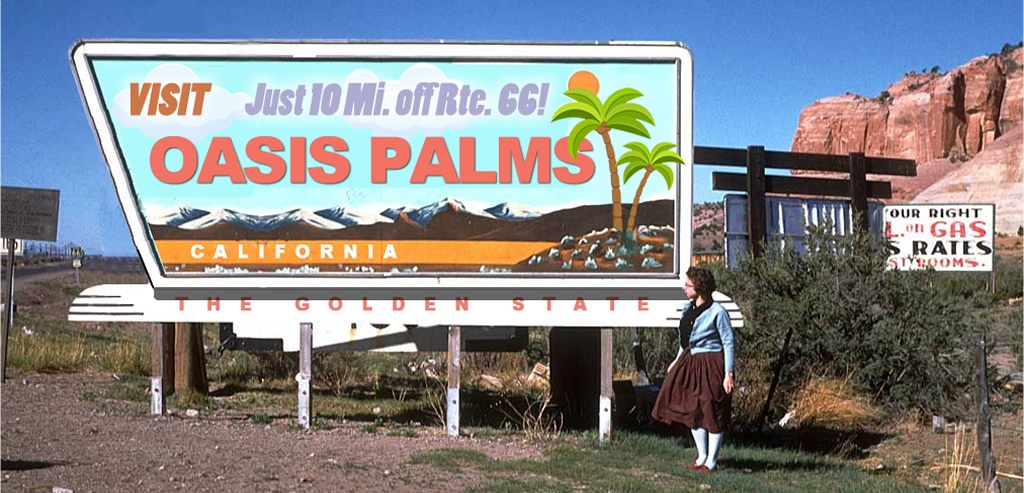 Oasis Palms, was a town located in the heart of California’s Mojave Desert in San Bernardino County nestled in a plateau in the Ship Mountains, just ten miles south of historic Route 66. This desert enclave emerged south of the Santa Fe railroad main line in the late 1800’s, near other long-forgotten Mojave Desert towns and water stops including Amboy, Cadiz, and Danby, all located along the Old National Trails Highway. This desert oasis thrived for a century and then was gone, becoming the “Lost Pearl of the Mojave Desert.”